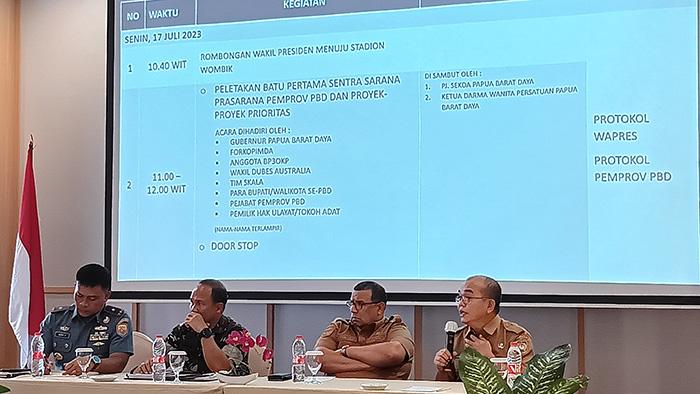 Di hari ke-3 Senin (17/7/2023) ucapnya, Wapres Ma'ruf Amin menuju stadion Wombik untuk peletakan batu pertama pembangunan Kantor Gubernur Papua Barat Daya dan proyek prioritas.