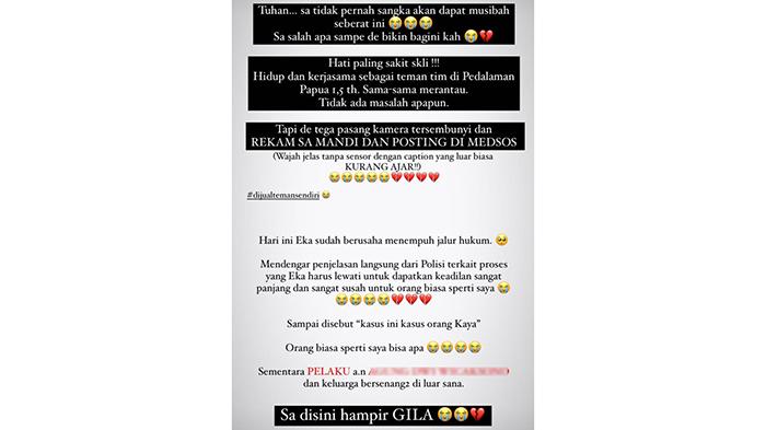 Berdasarkan informasi, kejadian perekaman yang menimpa korban sudah cukup lama, hanya saja baru diungkap korban dalam unggahan story IG.