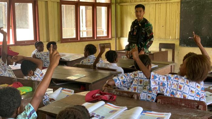 Seperti yang dilakukan personel Pos Mubrani mengajar di SD Negeri Inpers 32 Arfu dan personel Pos Kais mengajar di SD YPK BAHTERA INJIL, Rabu (20/09/2023).