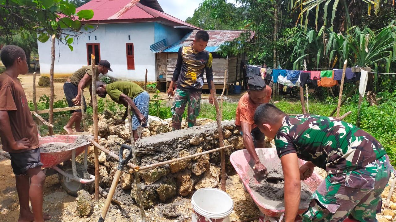 TRIBUNSORONG.COM, KUMURKEK - Satgas Yonif 133/YS mengerahkan prajuritnya dari Pos Buohsa untuk membantu warga binaanya membangun bak penampungan air bersih di Kampung Buohsa Distrik Aifat Selatan Kabupaten Maybrat-Papua Barat daya, Rabu (27/9/2023).