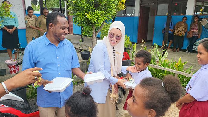 Tambah Oktasari, mulanya pembagian makanan dan susu gratis diwacanakan dilakukan di semua sekolah yang ada di Kota Sorong, tetapi karena terkendala cuaca hujan, sehingga hanya beberapa sekolah yang didatangi.
