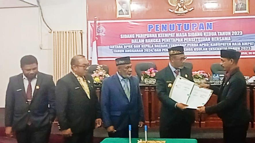 Penandatanganan tersebut disaksikan pimpinan dan anggota DPRK Raja Ampat di ruang sidang Kantor DPRK, Kamis (30/11/2023) malam.