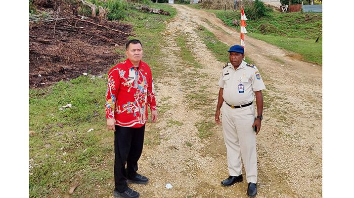 TRIBUNSORONG.COM, KUMURKEK - Penjabat (Pj) Bupati Bernhard E Rondonuwu meninjau Jalan Ayata-Aisa, Distrik Aifat Timur, Maybrat, Papua Barat Daya, Kamis (21/12/2023).