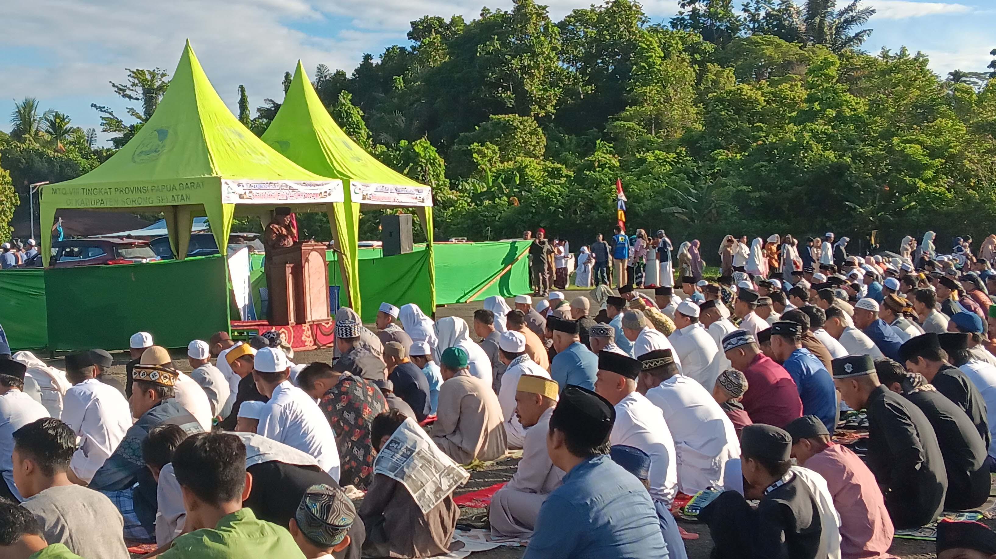 Bupati Sorong Selatan Samsudin Anggiluli bersama ribuan Jemaah Salat Ied 1445 Hijriah di Bandara Teminabuan, Rabu (10/4/2024) pagi.