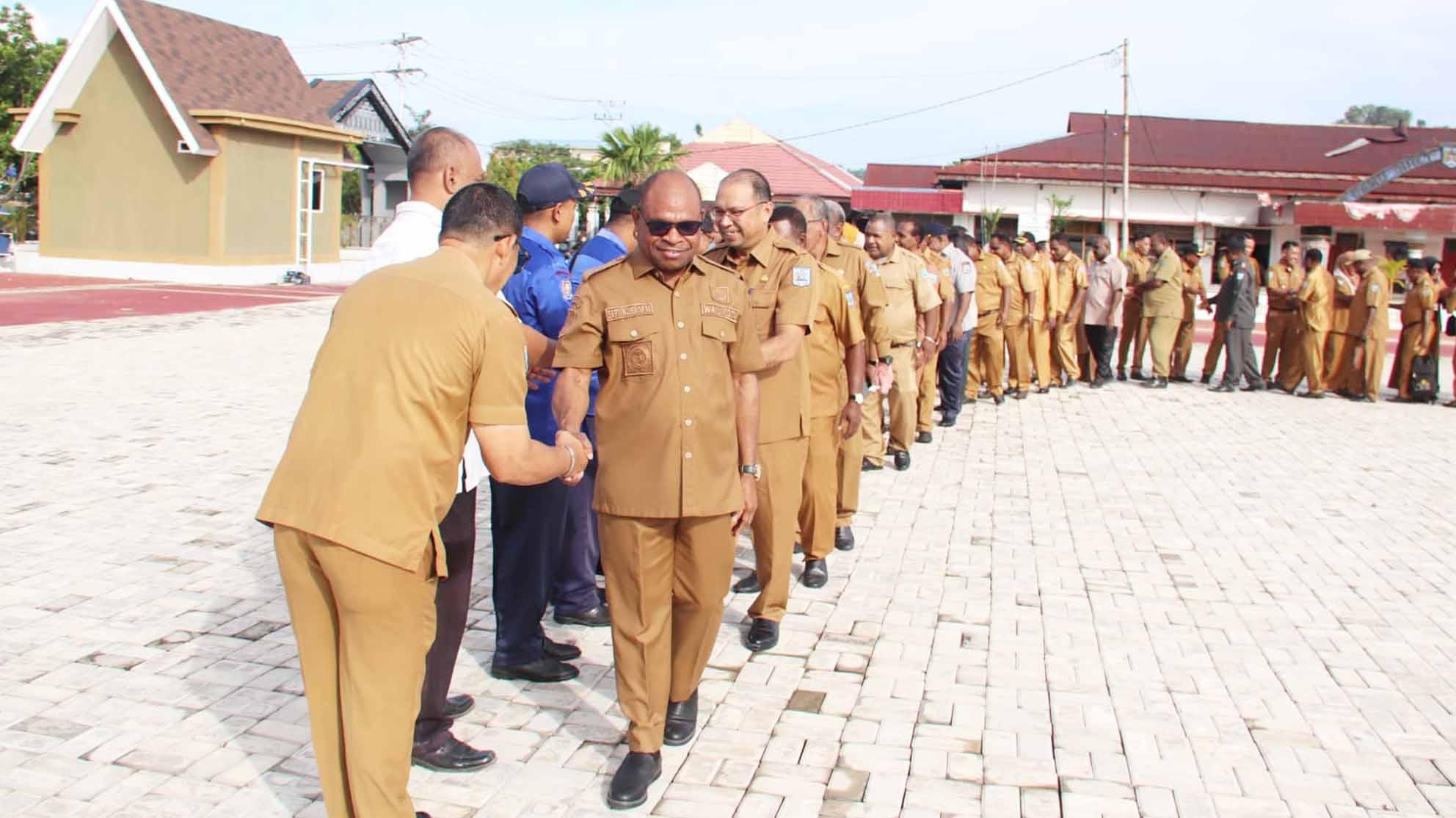 TRIBUNSORONG.COM, SORONG - Pemerintah Kota (Pemkot) Sorong menggelar apel perdana usai libur nasional dalam rangka hari raya Idul Fitri 1445 Hijriah.