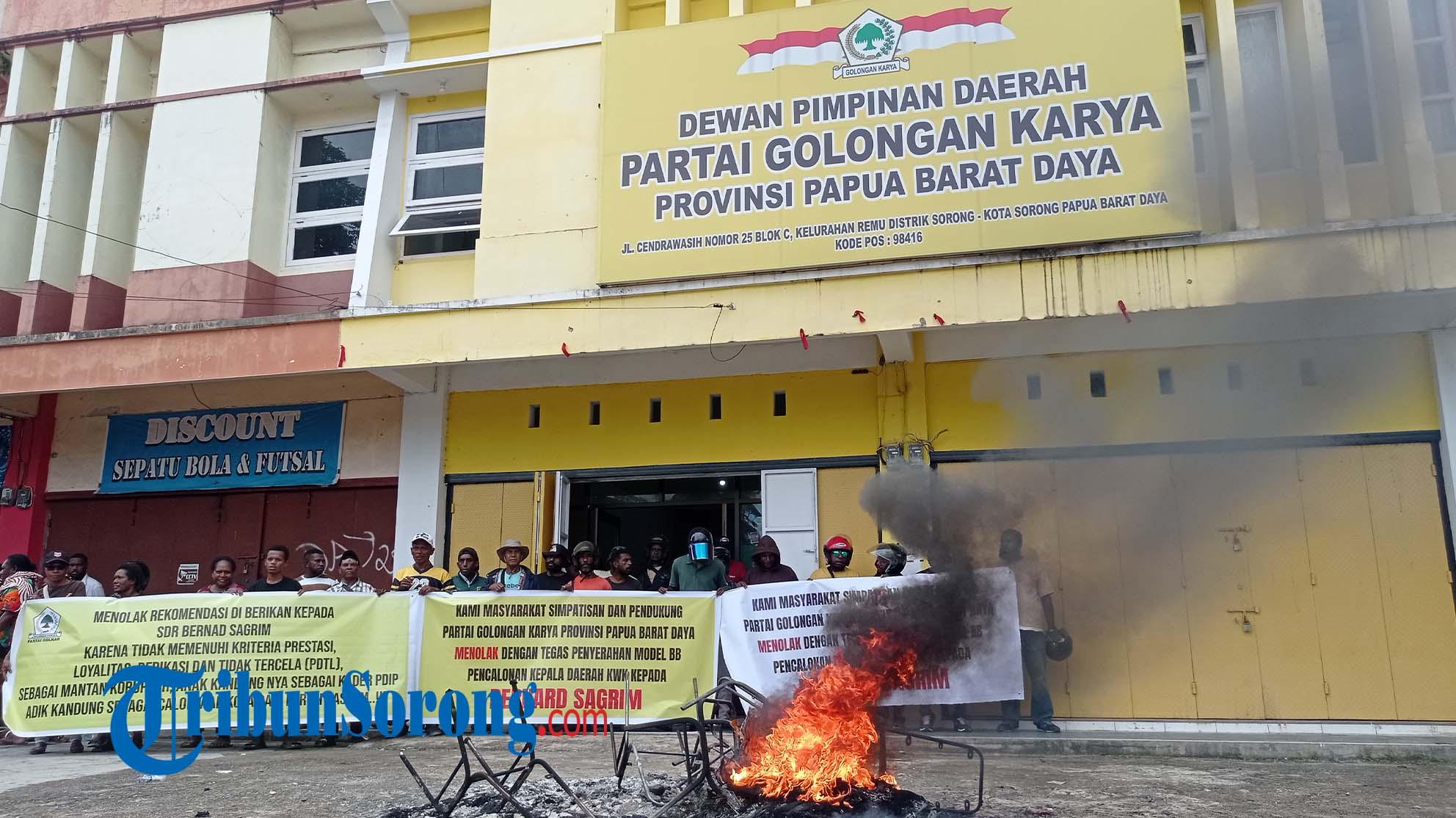 Aksi itu diduga terkait informasi DPP Partai Golkar yang mau menyerahkan formulir B1KWK kepada Bernard Sagrim agar maju di Pilkada Gubernur Papua Barat Daya.