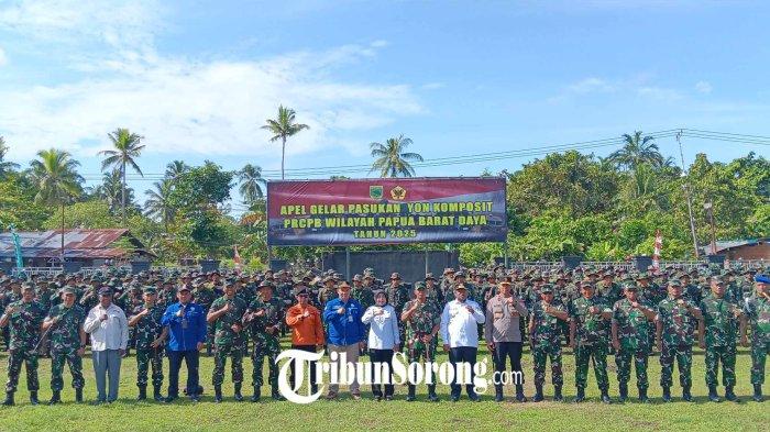 TRIBUNSORONG.COM, AIMAS - Apel Gelar Pasukan Komposit Reaksi Cepat Penanggulangan Bencana (PRCPB) Wilayah Papua Barat Daya Tahun 2025 digelar di halaman Yonzipur 20, Kabupaten Sorong, Rabu (30/4/2025) pagi.