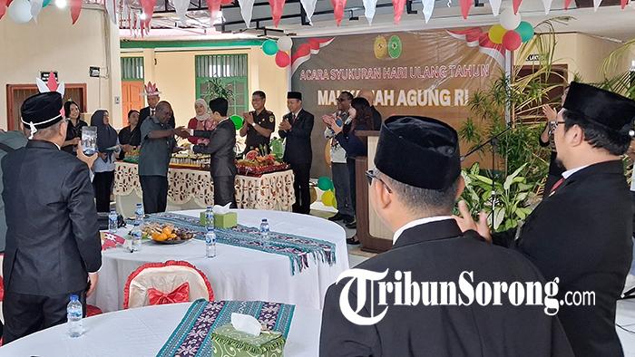TRIBUNSORONG.COM, SORONG - Peringatan Hari Ulang Tahun (HUT) Ke-80 Mahkamah Agung (MA) di Kota Sorong, Papua Barat Daya dipusatkan di Pengadilan Negeri (PN) Kelas IB Sorong.