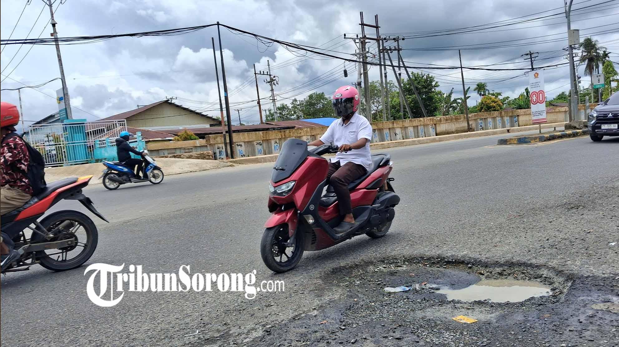 Pengendara Mengeluh, Jalan Berlubang di Kota Sorong Ancam Keselamatan