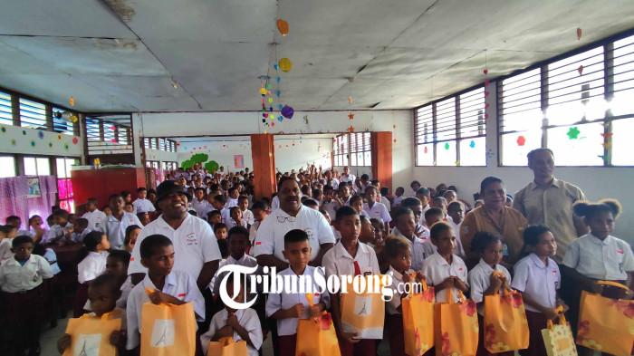 TRIBUNSORONG.COM, SORONG - Dewan Pengurus Daerah Barisan Merah Putih (DPD BMP) Papua Barat Daya bersama Lembaga Masyarakat Adat (LMA) Papua Barat Daya kunjungan kasih ke SD YPK Elim Malanu, Kota Sorong, Selasa (7/10/2025).