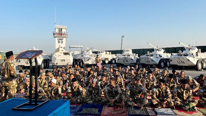 Personel yang tergabung dalam Satgas Yonmek TNI Konga XX-III S UNIFIL Kompi Charlie salat Markas UNP 9-2.